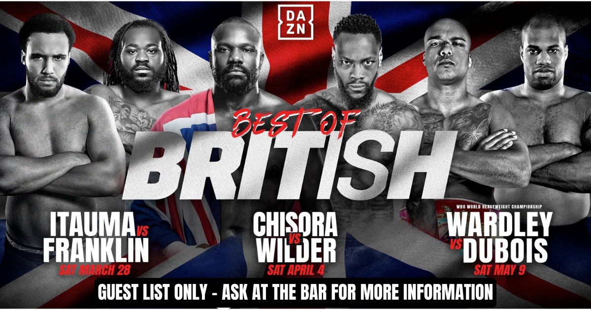 🥊🇬🇧Best of British boxing Live at The White Horse🇬🇧🥊 Don't miss it three nights of some of the best British boxing coming live for you! Itauma vs Franklin - This Saturday The exciting Moses Itauma is first up this weekend taking on Jermaine Franklin in Manchester 🇬🇧Itauma comes into this fight with 13 wins (11 by Knockout) and 0 losses and at just 21 years old is one of the most exciting talents in the sport 🇺🇸Franklin has 24 wins (15 Ko) and 2 losses in his experienced career, His two losses came to Anthony Joshua and Dillian Whyte 🥊Who do you think will win? 🎟These events are strictly guest list only - ask at the bar for more information